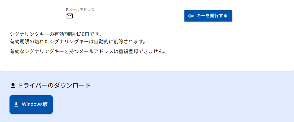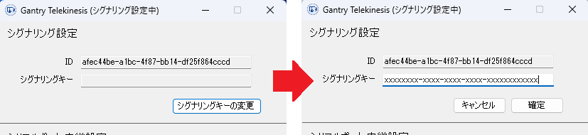 シグナリングキーは設定用UIの「シグナリングキーの変更」を押すことで入力可能になり、「確定」を押すことで反映されます。 - 接続先となるPCにも同様にドライバーをインストールして、シグナリングキーを設定します。
